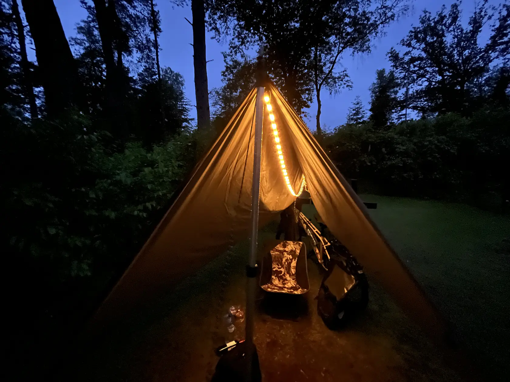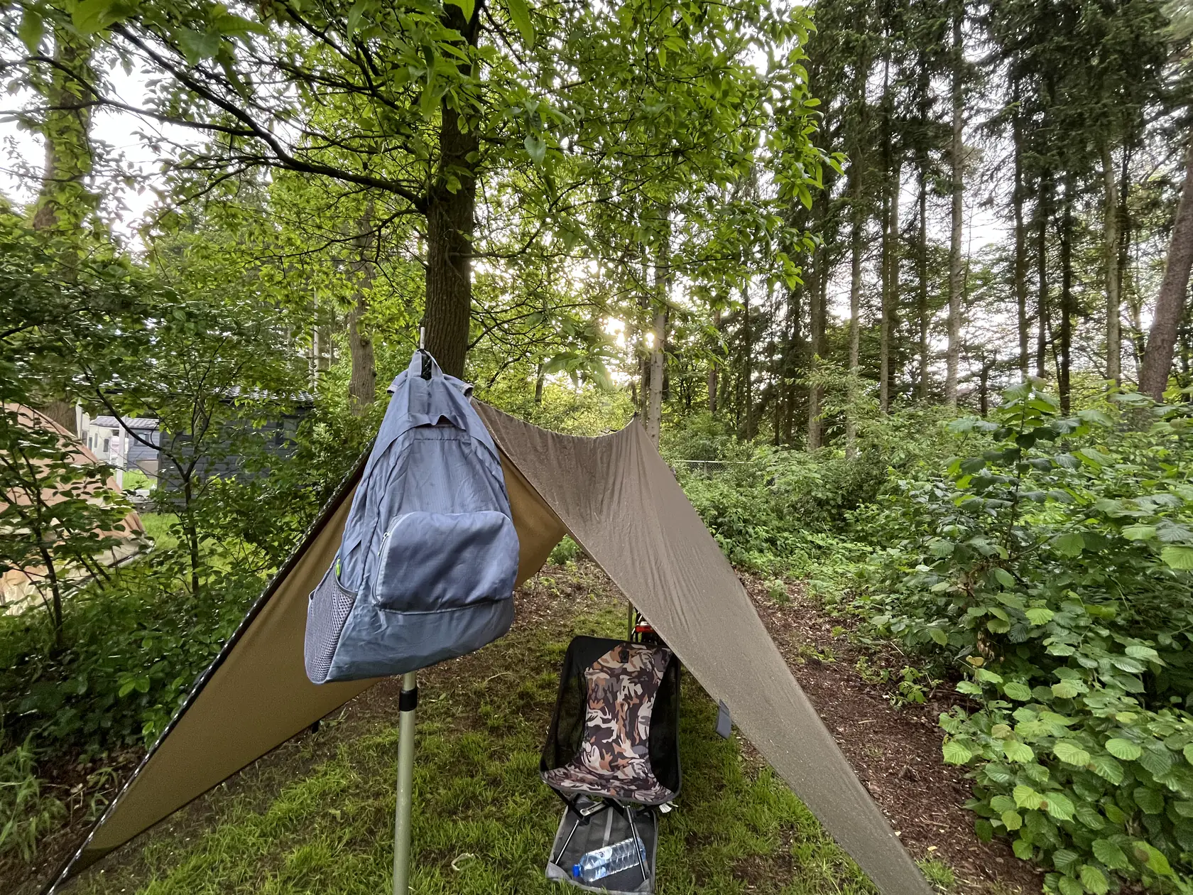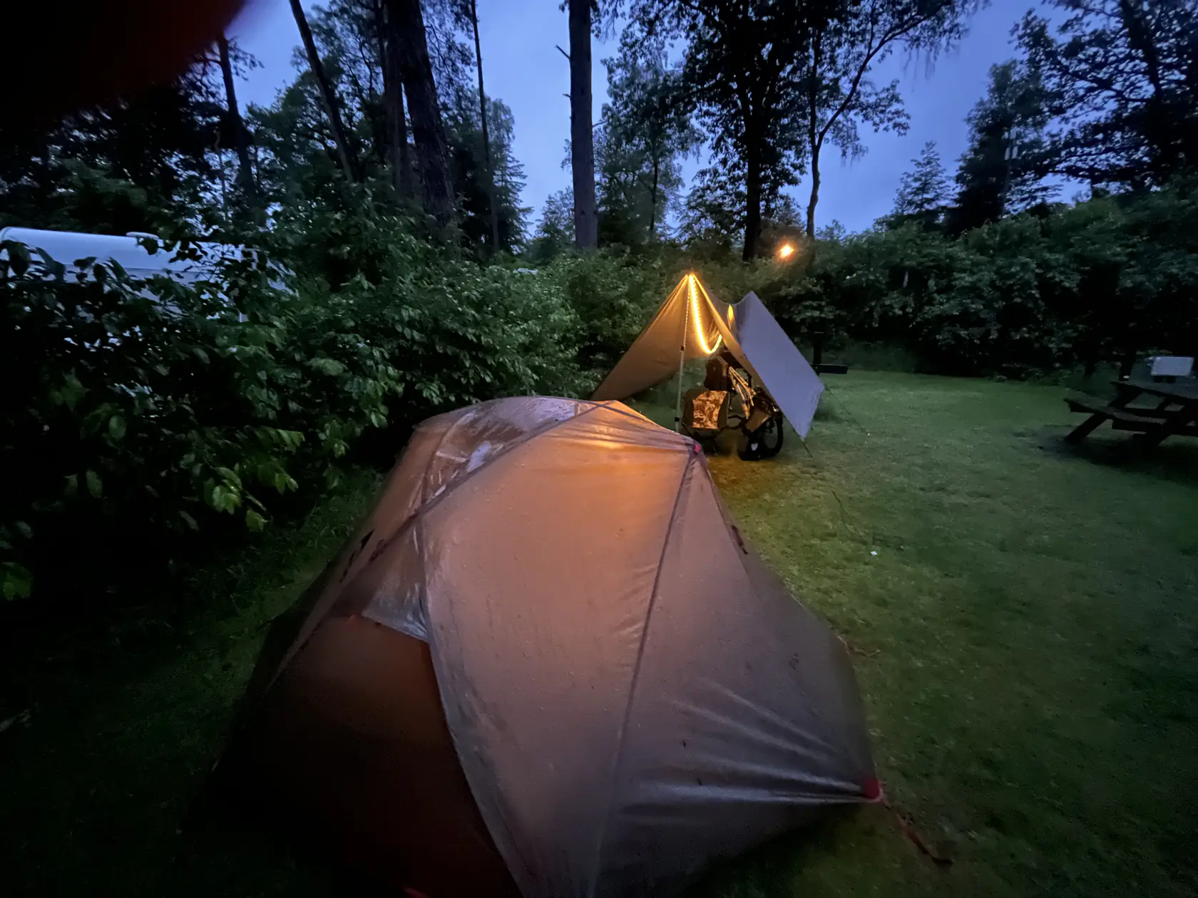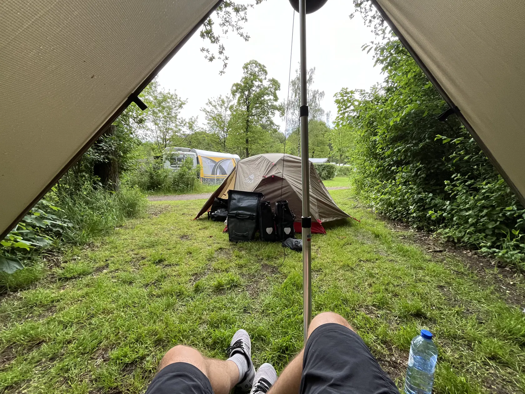 Overall it just was a really wet day without seeing much sunshine. I was able to get a lot of footage for my aftermovie. When I arrived at Molecaten Park De Leemkule I had the whole area to myself with nobody around me. It made it possible to do a really nice setup with my tarp and tent. I really liked the facilitation, the one downside was it was next to a highway so you do hear cars going the whole time.