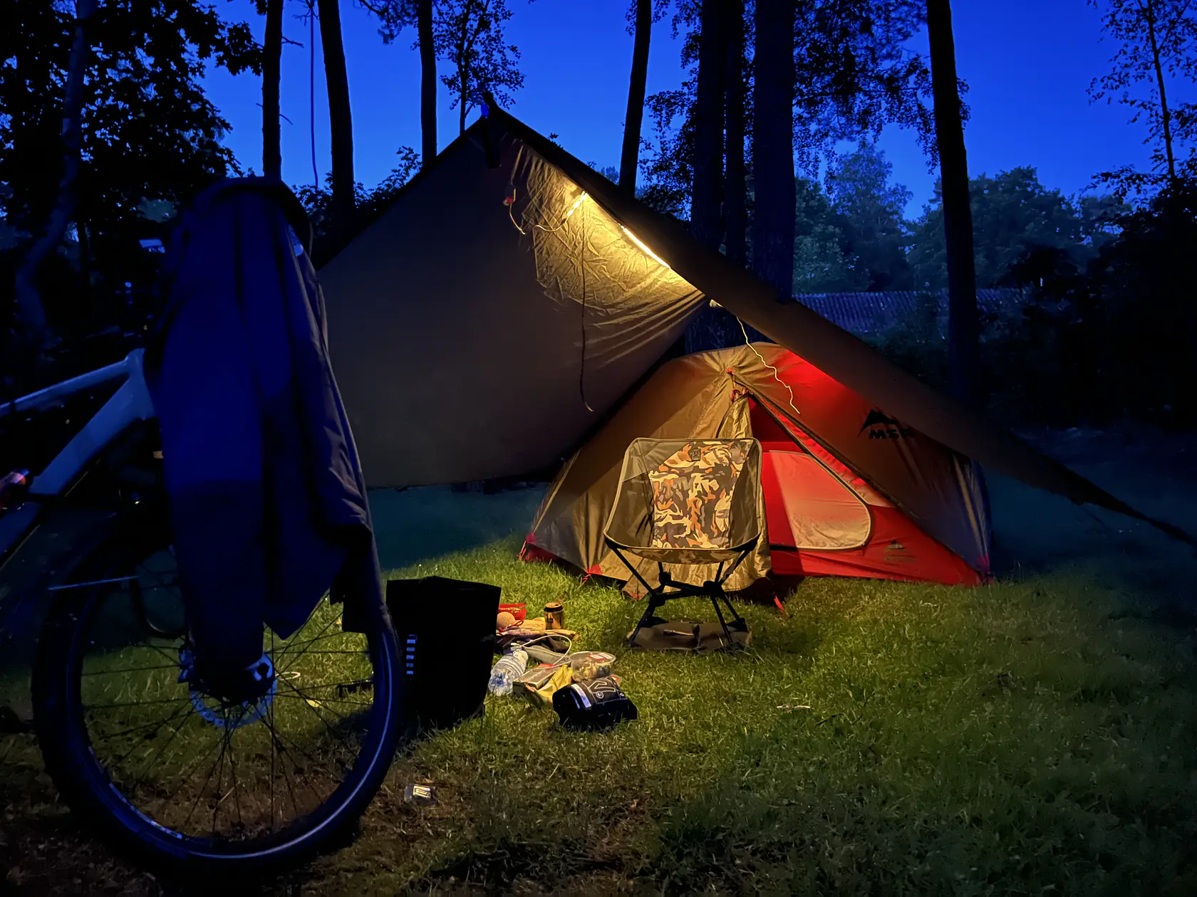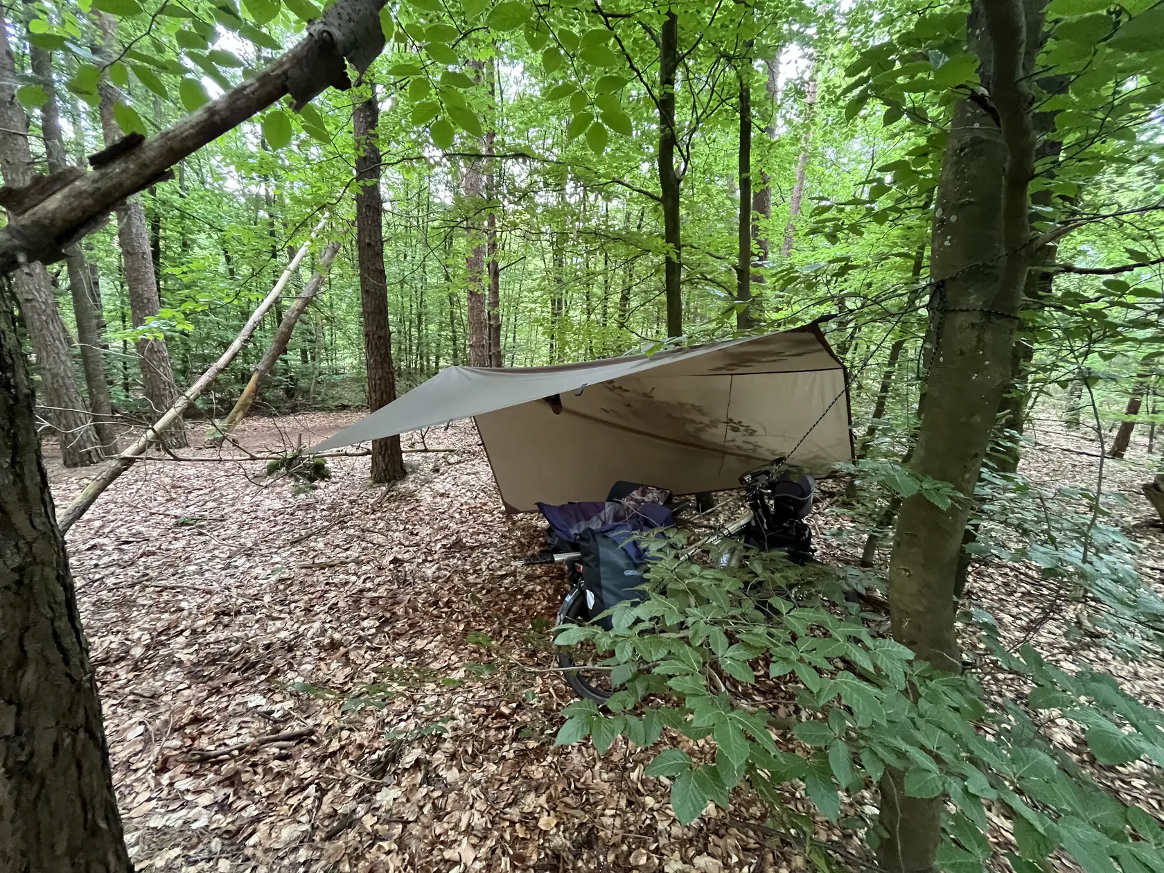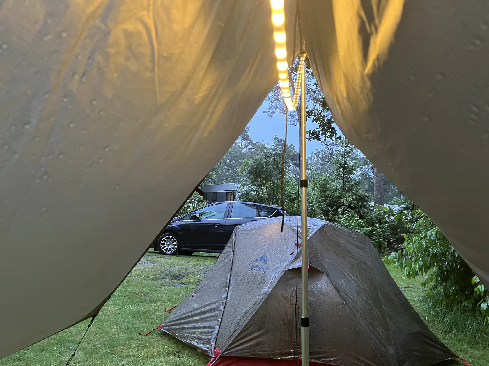 Overall it just was a really wet day without seeing much sunshine. I was able to get a lot of footage for my aftermovie. When I arrived at Molecaten Park De Leemkule I had the whole area to myself with nobody around me. It made it possible to do a really nice setup with my tarp and tent. I really liked the facilitation, the one downside was it was next to a highway so you do hear cars going the whole time.