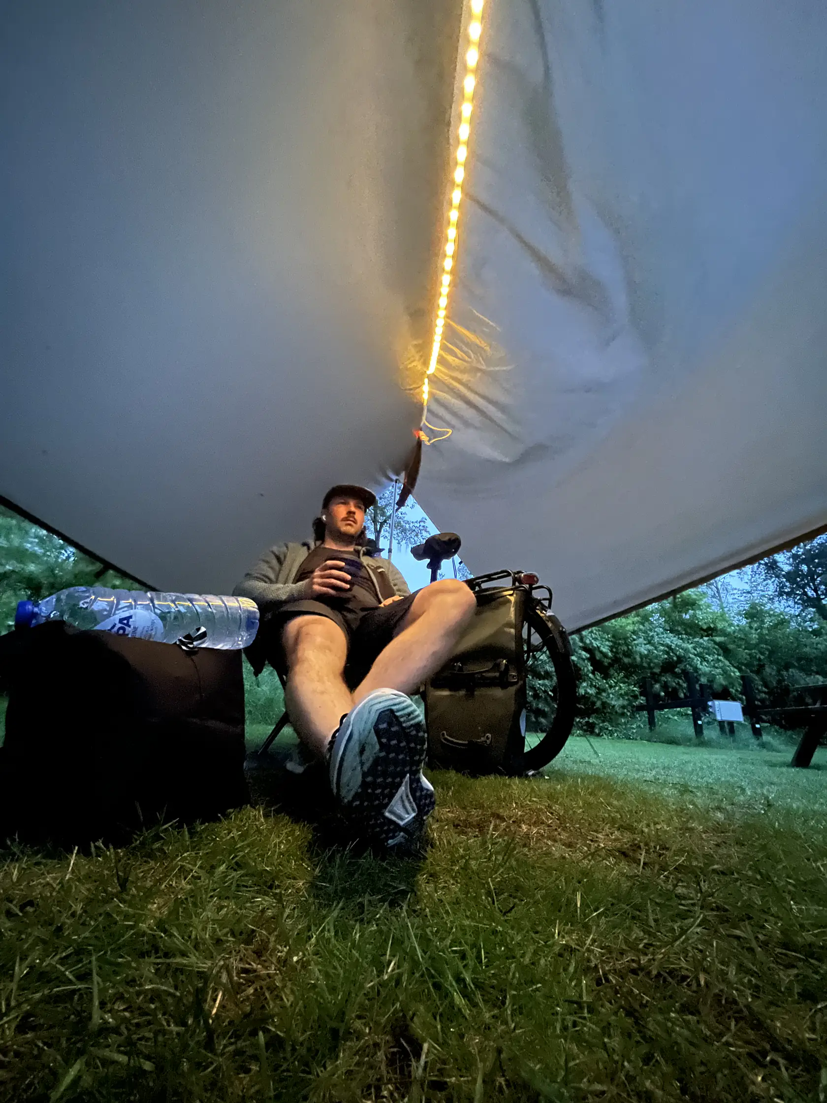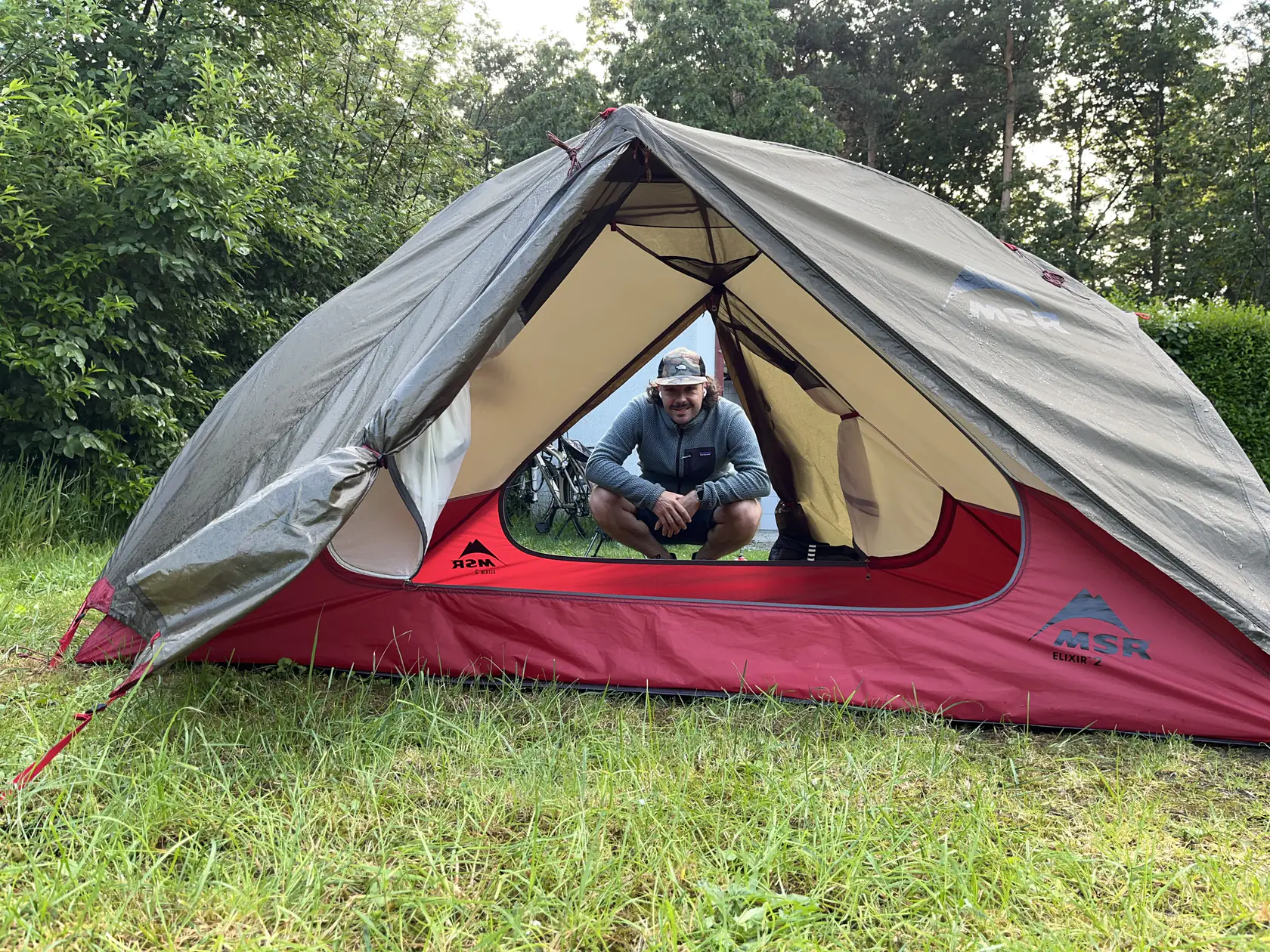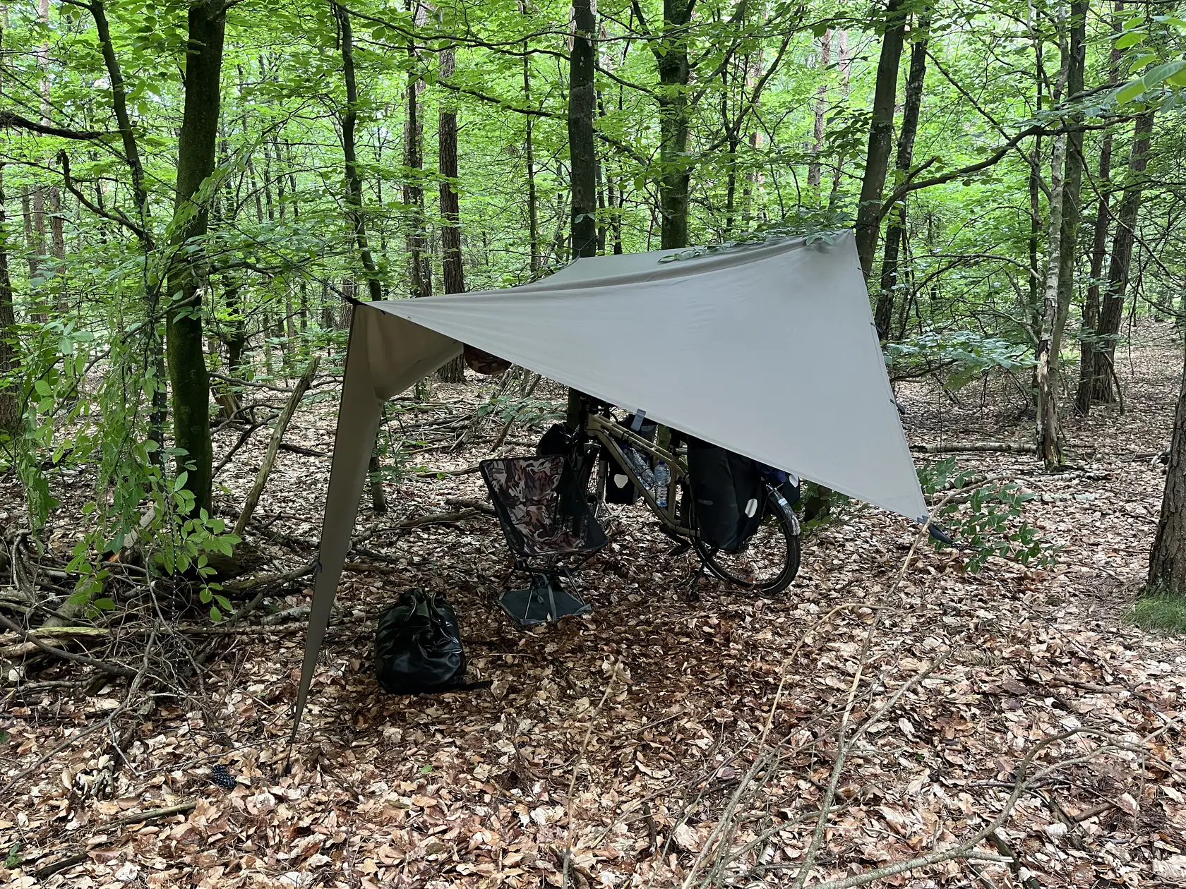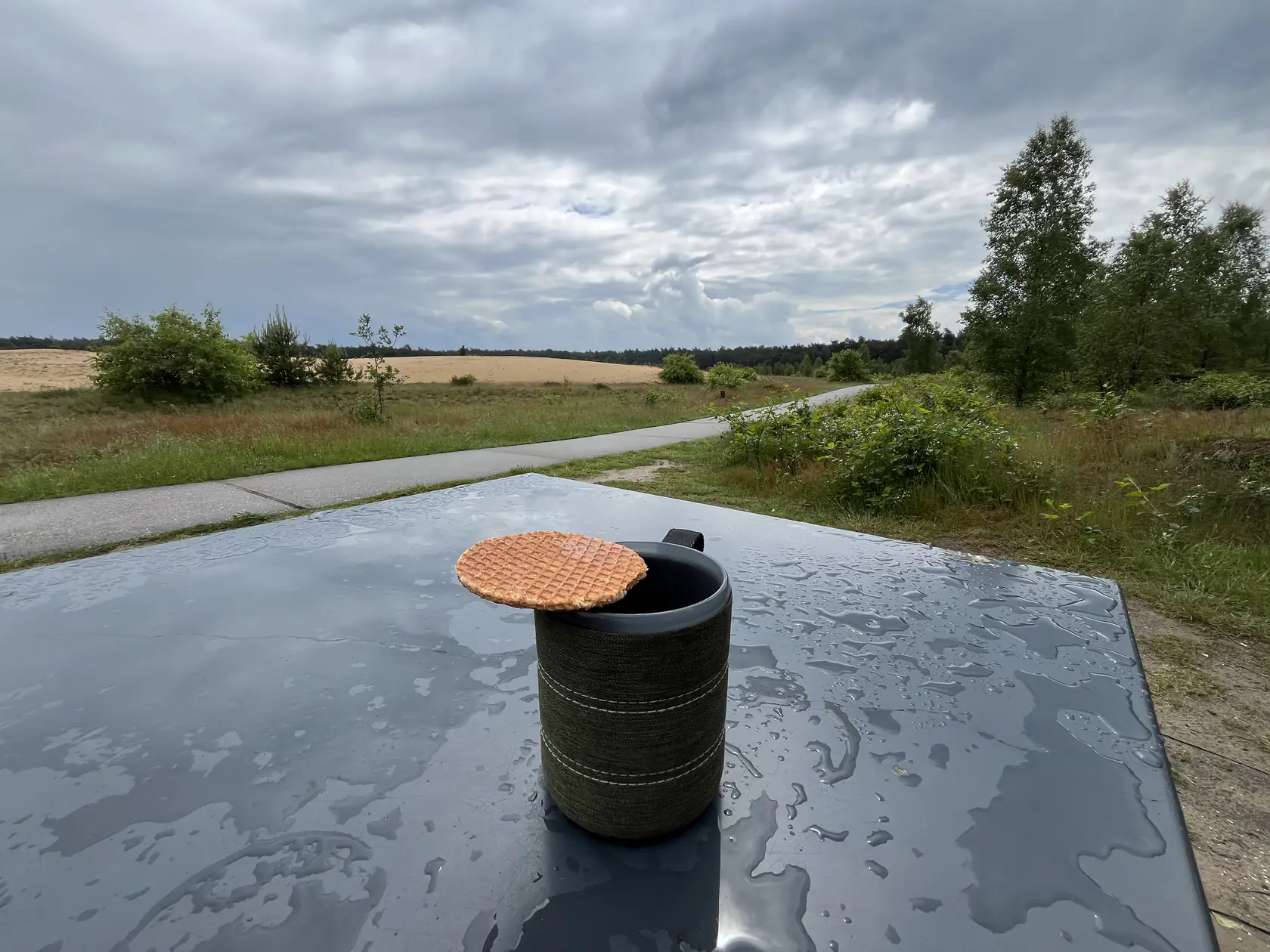 Overall it just was a really wet day without seeing much sunshine. I was able to get a lot of footage for my aftermovie. When I arrived at Molecaten Park De Leemkule I had the whole area to myself with nobody around me. It made it possible to do a really nice setup with my tarp and tent. I really liked the facilitation, the one downside was it was next to a highway so you do hear cars going the whole time.
