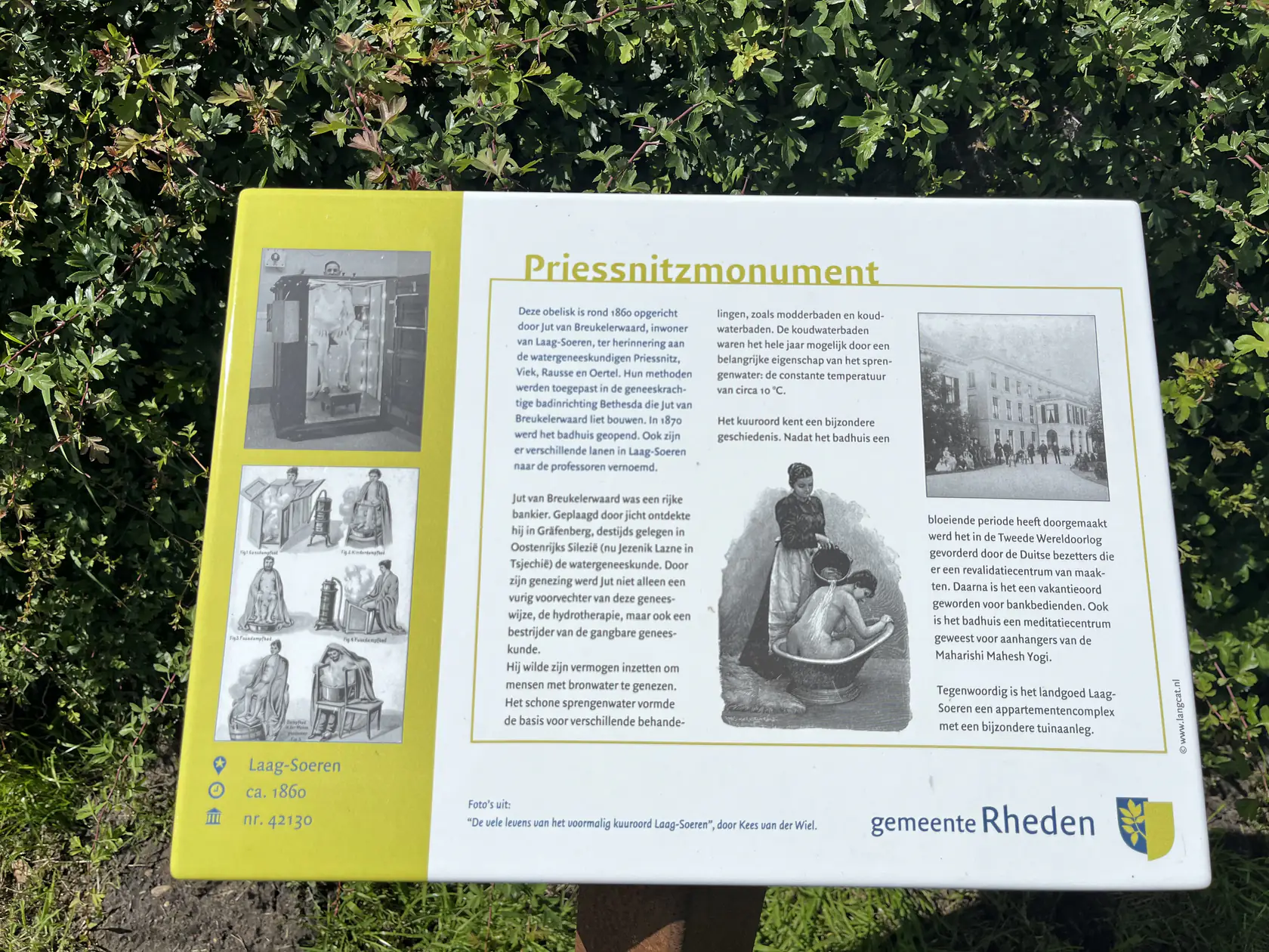 I past a monument called “Priesnitzmonument” also known as “Torentje van Jut”. It was named after Vincent Priessnitz who is generally considered the founder of modern hydrotherapy. A Dutch person named Jut van Breukelerwaard who suffered from rheumatism went to Germany for cold water treatment and the therapy turned out to be successful, hence this monument.