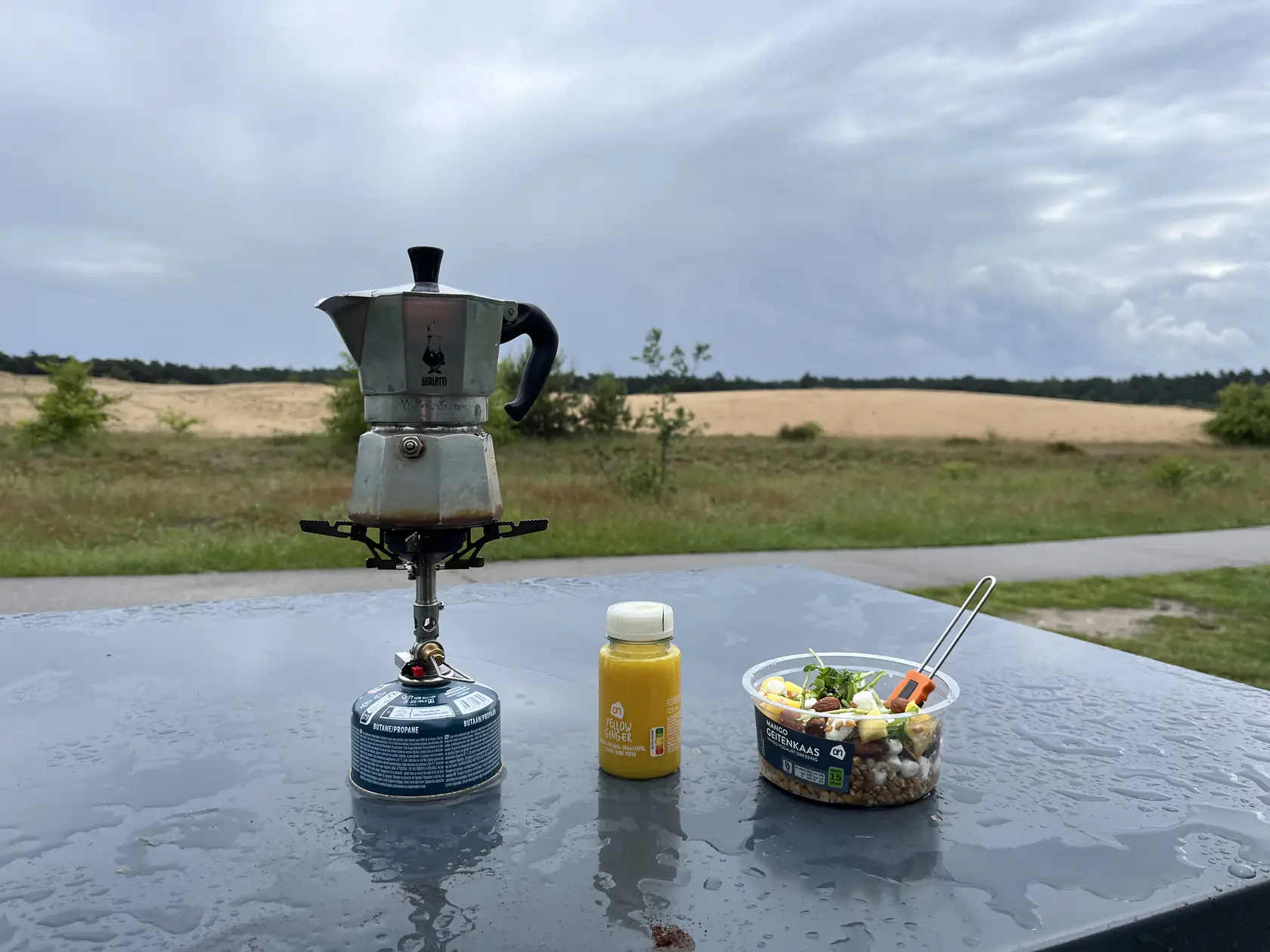 Now to be honest I slept really terrible the first day. Not because of the fact I needed to sleep in a tent but because of my neighbors who also slept in a tent. One of these guys decided to play video’s on his phone until 2 ‘o clock in the night which unfortunately prevented me to get some solid rest. Nevertheless it was a beautiful morning. After watching the sunrise, it was time for some fresh coffee and breakfast.